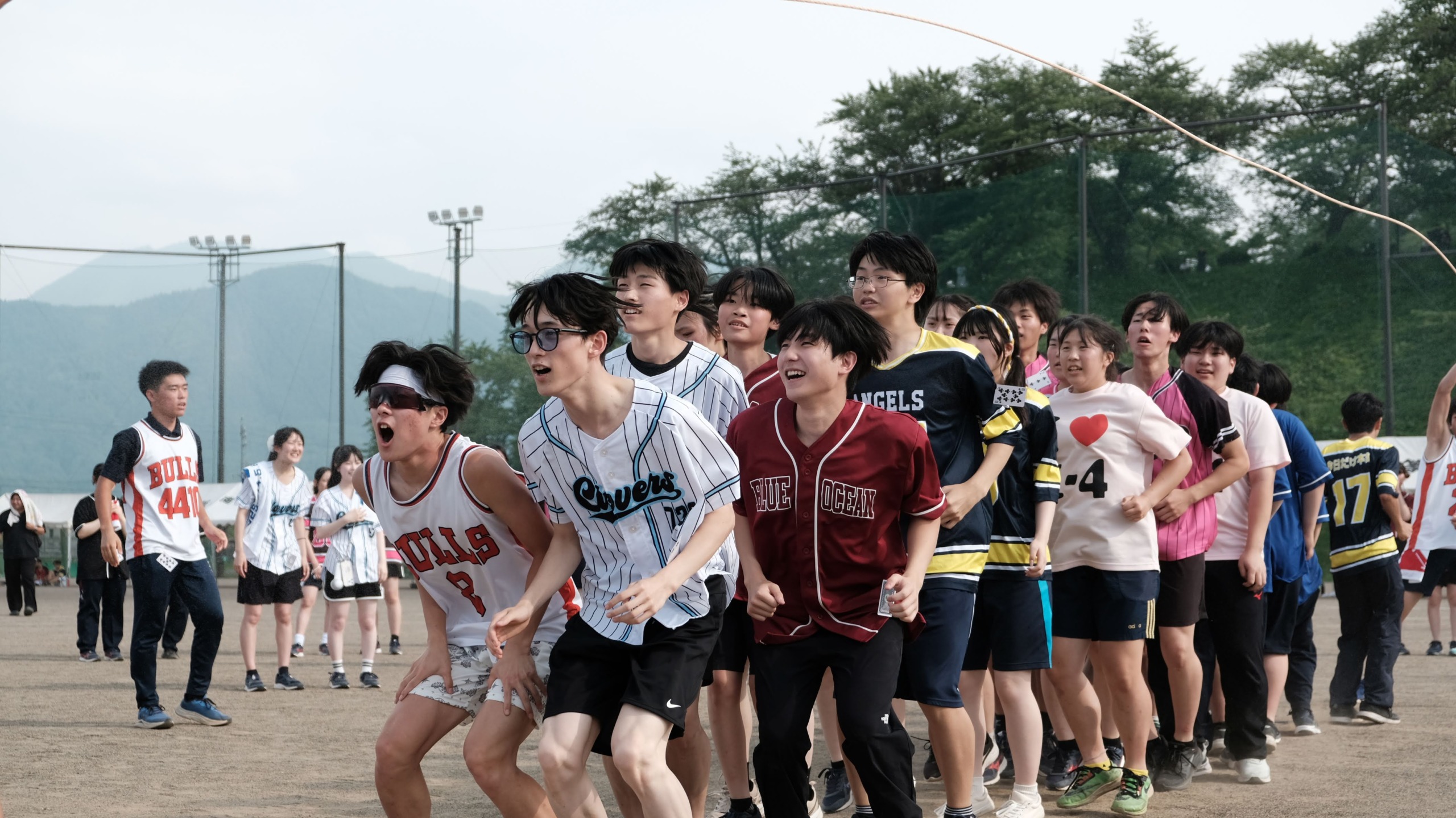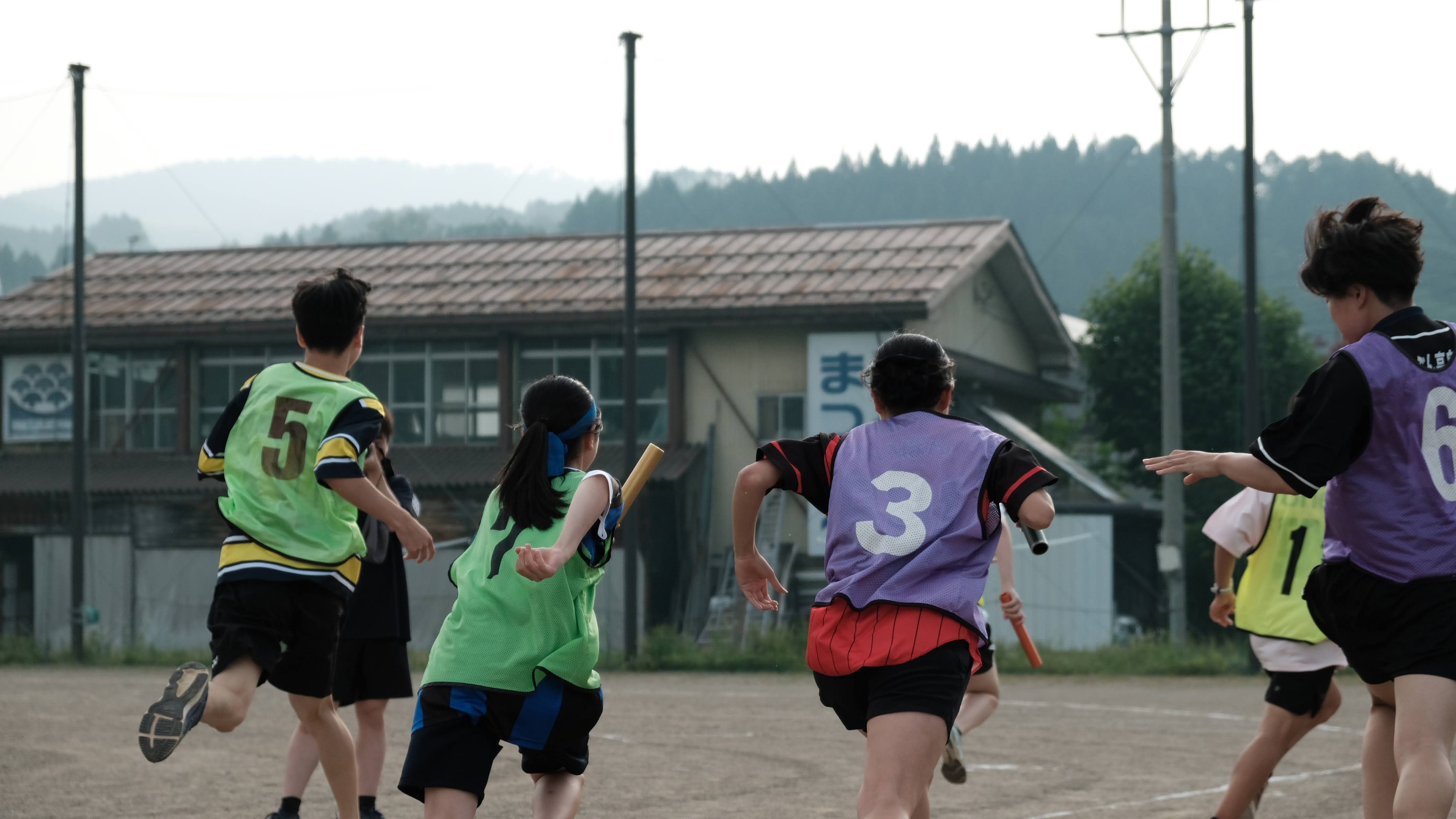 〈全校が4つのチームに分かれての体育祭!クラスの枠を超えて全校が団結します / 男女混合リレー!応援にも熱が入ります〉