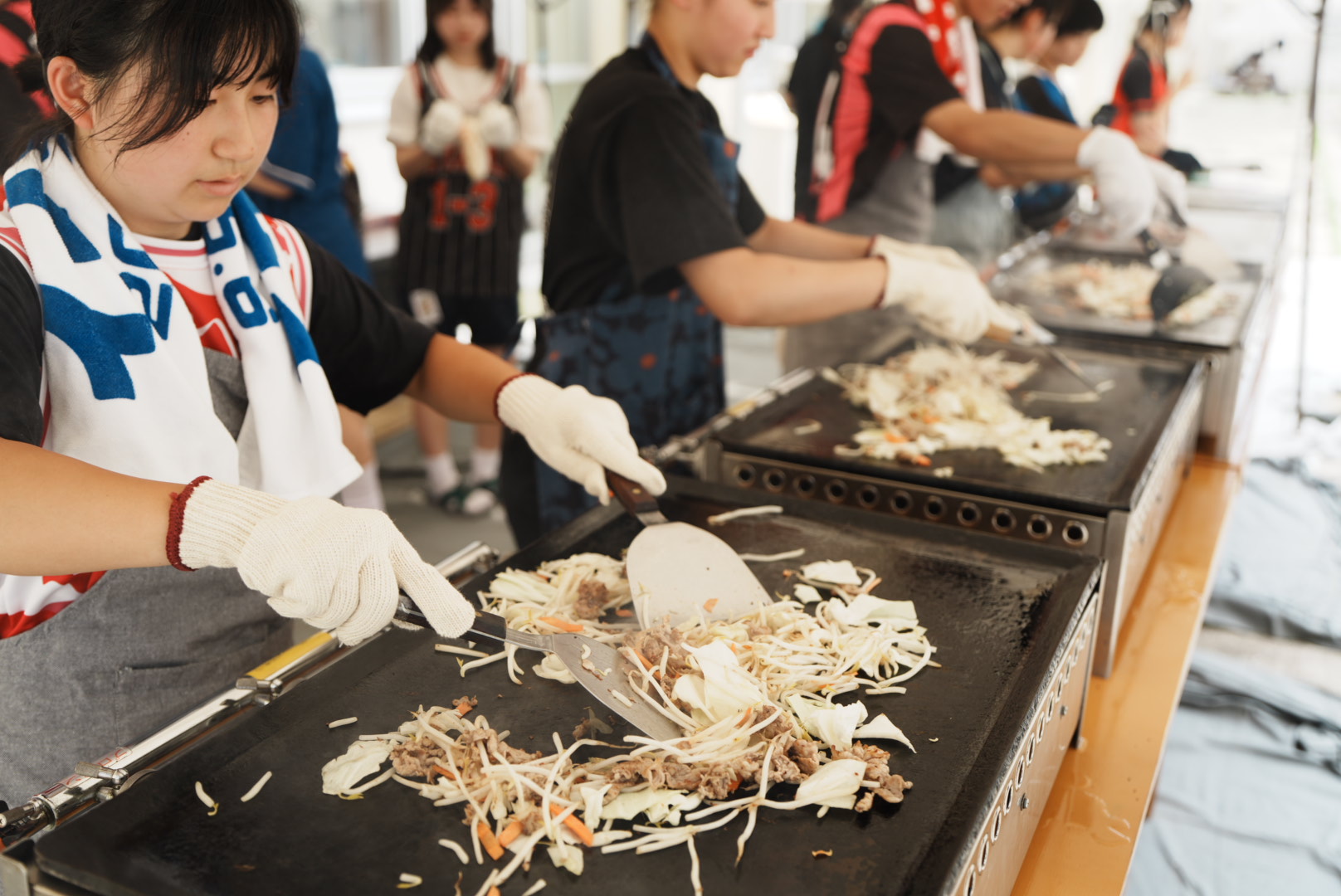 〈屋台の焼きそば大盛況!! / どのクラスもたくさんのアイデアがつまったクラス展示で来場者をおもてなし〉